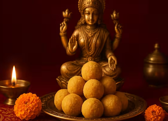 Gram flour laddus are offered to Goddess Lakshmi on Diwali, because laddus are dear to Lord Ganesha, and on Diwali, Ganesha is also worshipped along with Lakshmi, hence this offering brings prosperity in the house.