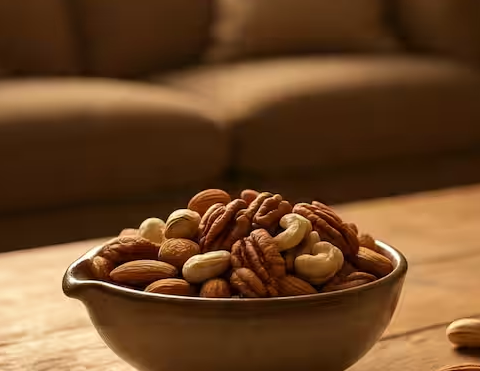 Nuts like almonds and cashews are healthy, but they contain high fat. Eating them at night takes time to digest and makes the stomach feel heavy.