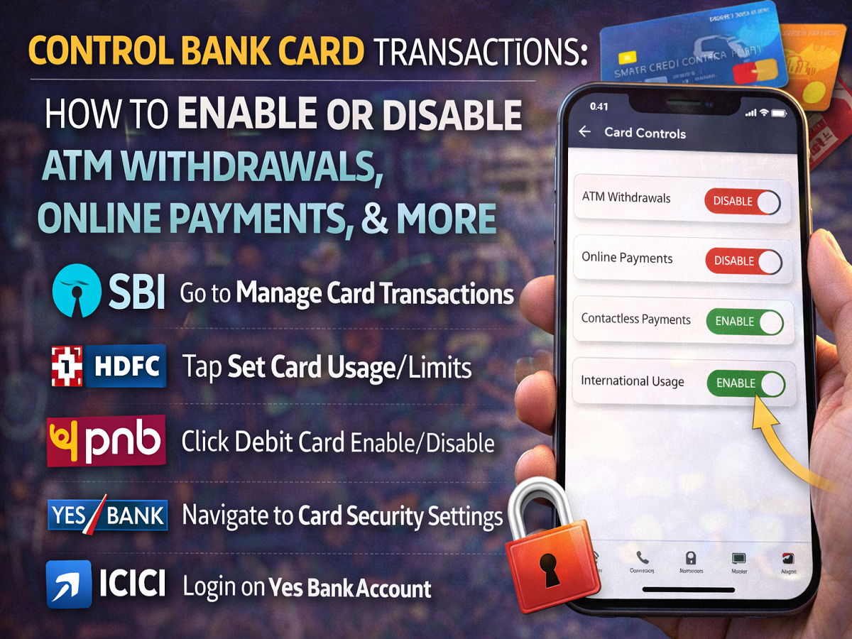 With the growing number of digital payments, banks in India have introduced several security features to protect customers from fraud. One such important feature allows users to control how their debit or credit cards are used by enabling or disabling ATM withdrawals, online transactions, contactless payments, and international usage.