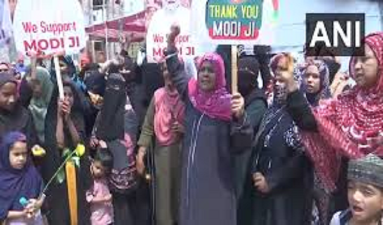 Earlier today, people of the Muslim community of Anandpura Kokta gathered near Hatai Kheda Dam in Bhopal and expressed their gratitude by carrying banners and posters of Prime Minister Narendra Modi. The happiness of the Muslim community can be gauged from the fact that people here are playing drums and bursting firecrackers.