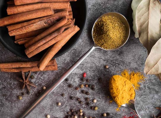 Now, add bay leaves, black peppercorns, cinnamon, star anise, cloves, and cardamom to a pan. Roast them over low heat. After cooling, grind them into a fine spice powder.