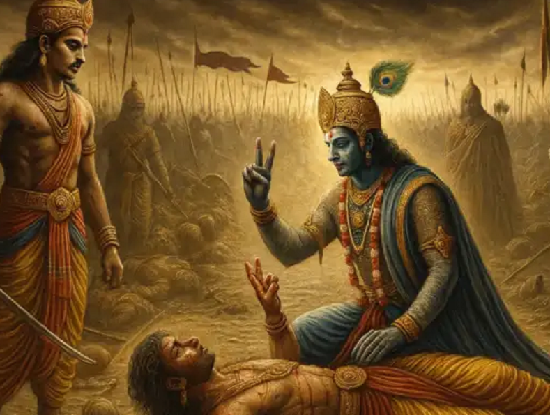 The war of Mahabharata was in its last phase. Duryodhan's pride was being shattered. This was the same Duryodhan who was very proud of his army and courage. Even after everyone's persuasion, he was neither ready to give five villages to the Pandavas nor was he willing to adopt the path of peace. Now he was lying on the ground. The attack of the mace of the mighty Bhima had injured him badly and he was counting his last breaths. Then he started pointing his finger repeatedly at Lord Krishna. After all, why was Duryodhan pointing his finger at Krishna who was supporting the Pandavas in his last moments? Let us know this interesting story of Mahabharata.